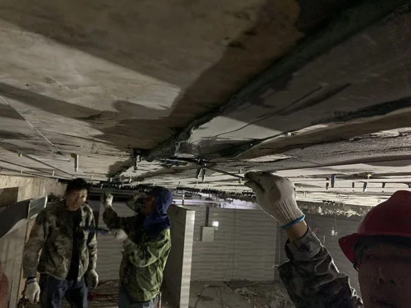 Основываясь на концепции «активного усиления», трещины сначала заполнили цементным раствором, а затем применили предварительное напряжение с использованием гидравлического натяжного оборудования для формирования активной системы поддержки. Это значительно повысило стойкость к трещинам, эксплуатационные характеристики конструкции и эффективность закрытия трещин.