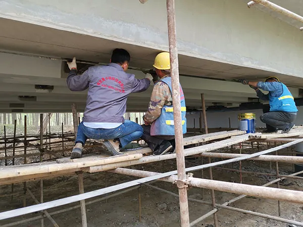 Система предварительного напряжения углеродных пластин перед заливкой бетона для моста через реку Циншуй, провинция Хэнань
